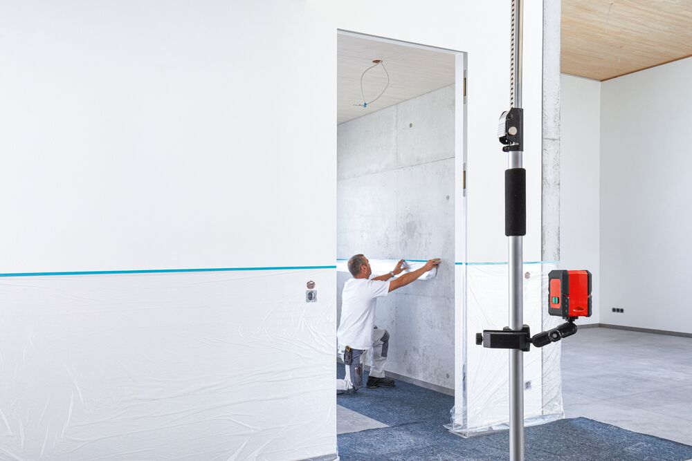 Halterung mit 1/4“ Gewindeaufnahme zum Fixieren von Hilfsmitteln wie z.B. Laser, Kamera, Bauleuchte