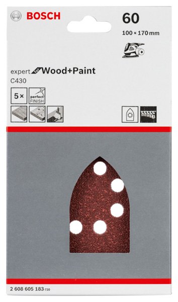 Schleifblatt C430, 100 x 170 mm, 60, 8 Löcher, Klett, 5er-Pack