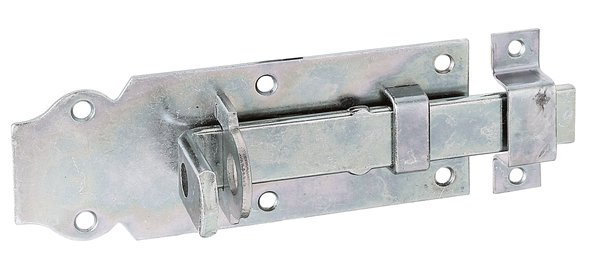 Produktinformationen "Schlossriegel,m.flachem Griff,gerade,m.Schlaufe,disp.,Platte LxB140x52mm"