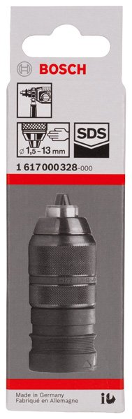 Das Schnellspannbohrfutter mit Adapter ist ein Bosch Systembohrfutter, das sich ohne zusätzliches Werkzeug anbringen und abnehmen lässt. Es spannt Bohrer (Durchmesser 1,5 bis 13 mm) mit minimalem Aufwand ein und erfordert keinen Schlüssel. Passend zu: GBH 2-24 DFR. GBH 24 VFR. GBH F Professional. PBH 200 FRE. PBH 220 RE. PBH 240 RE.
