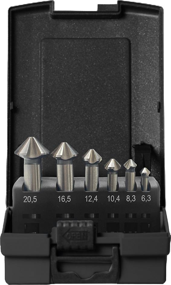 Inhalt: 6 Kegelsenker Ø 6,3; 8,3; 10,4; 12,4; 16,5; 20,5 mm