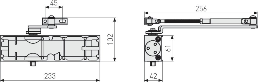 SICHERER EMPFANG Selbstständig schließender Türschließer für Empfangstüren von Büros und öffentlichen Gebäuden. Die Eingangstür Ihres Büros ist repräsentativ. Sorgen Sie dafür, dass sie stets sicher und leise schließt. Und das selbstständig. Dieser Türschließer eignet sich speziell für Empfangstüren mit einer Breite von bis zu 1,10 Metern und einem Maximalgewicht von 80 Kilogramm. Die Schließkraft ist individuell einstellbar, der Arm kann festgestellt werden. Mit einer optionalen DIN-Platte eignet sich der Türschließer zudem für Feuerschutztüren.